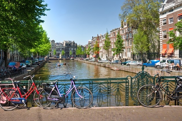 Spend free time exploring the colorful streets, bridges, and canals of Amsterdam—with its many cafés and art galleries.